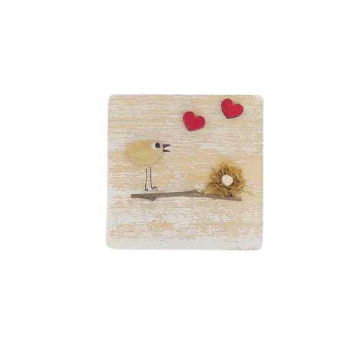 Ξύλο Βότσαλο Πουλί Καρδιά Τετράγωνο