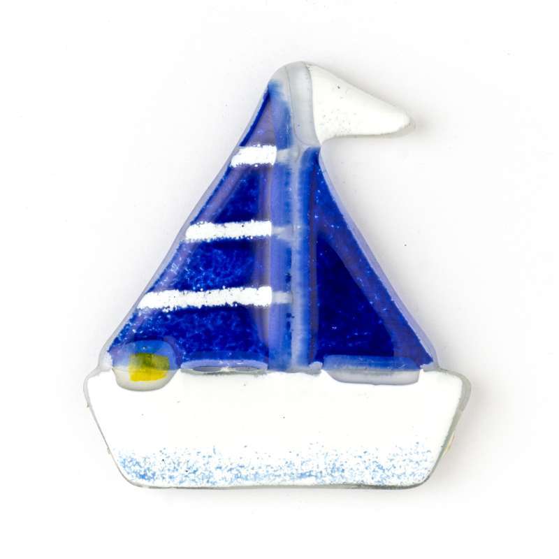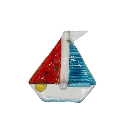 Χειροποίητο μαγνητάκι από γυαλί σε σχέδιο καράβι σε ακανόνιστο σχήμα, με τη μέθοδο fusing, σε διάφορα χρώματα και σχέδια.