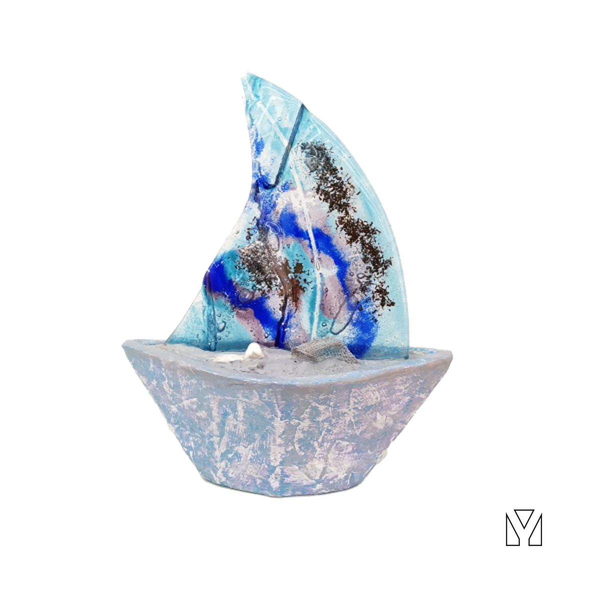 Χειροποίητη κατασκευή σε σχήμα καράβι από χαρτοπολτό και γυαλί με τη μέθοδο fusing.