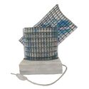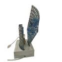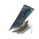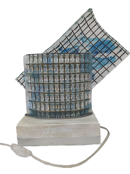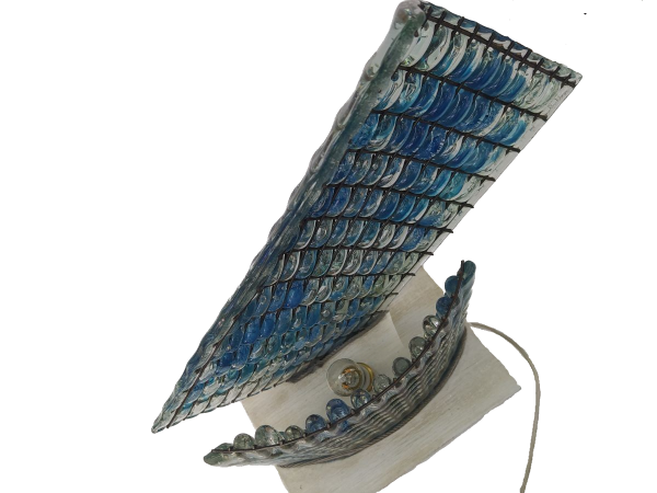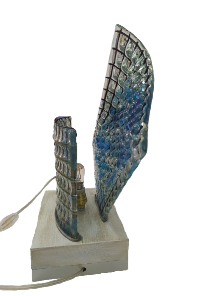 Χειροποίητη κατασκευή επιτραπέζιο φωτιστικό σε μπλε χρώμα από γυαλί με τη μέθοδο fusing πάνω σε ξύλο.