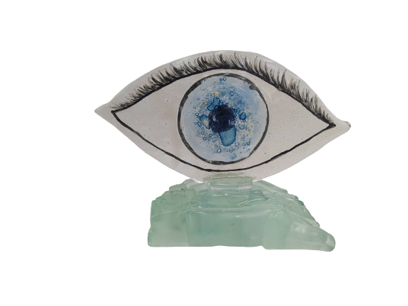 Χειροποίητη κατασκευή από γυαλί με τη μέθοδο fusing σε σχήμα ματιού σε γυάλινη βάση. Ιδανικό για δώρο ως γούρι για εσάς ή τον επαγγελματικό σας χώρο.
