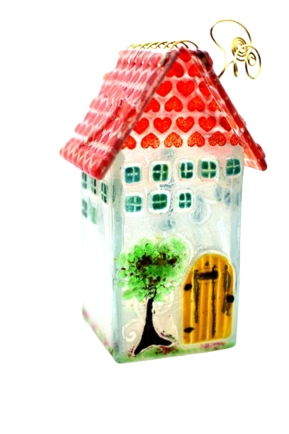 Χειροποίητη γυάλινη κατασκευή σε σχέδιο σπιτάκι μεγάλο για ρεσό, με τη μέθοδο fusing, ιδανικό για τη διακόσμηση του σπιτιού ή του επαγγελματικού σας χώρου. Διατίθεται σε διάφορα σχέδια και χρώματα.