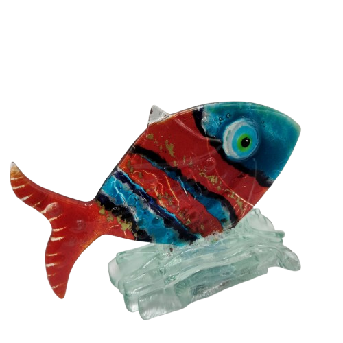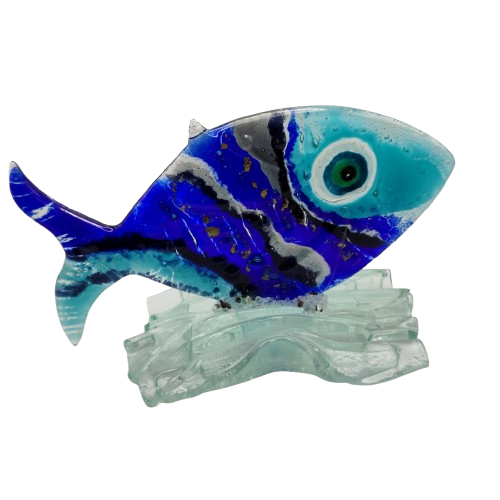 Χειροποίητη κατασκευή ψάρι με τη μέθοδο fusing πάνω σε γυάλινη βάση.