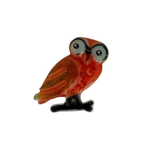 Χειροποίητο μαγνητάκι από γυαλί σε σχέδιο κουκουβάγια σε ακανόνιστο σχήμα, με τη μέθοδο fusing, σε διάφορα χρώματα.