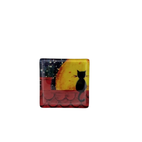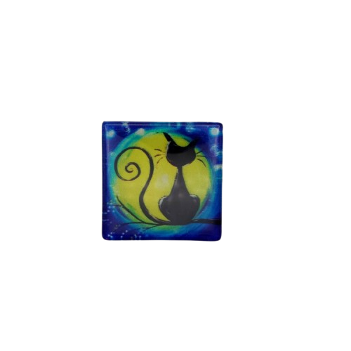 Χειροποίητο Γυάλινο μαγνητάκι, σε μέγεθος 6X6 cm, με ψηφιακή εκτύπωση σε διάφορα σχέδια με γάτες.