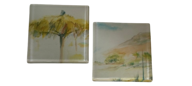 Γυάλινο σουβέρ με ψηφιακή εκτύπωση, σε μέγεθος 9.5x9.5 cm.